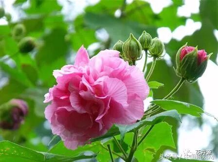 木芙蓉的花色,是最为人称道的,大多数花卉,单株上只有一种花色,而木芙蓉的花色是会变的,刚盛开时呈深红色,渐渐变成粉红,变成白色,所以在观赏的过程中,可能会有一树三色的情况,是不是很神奇呢?