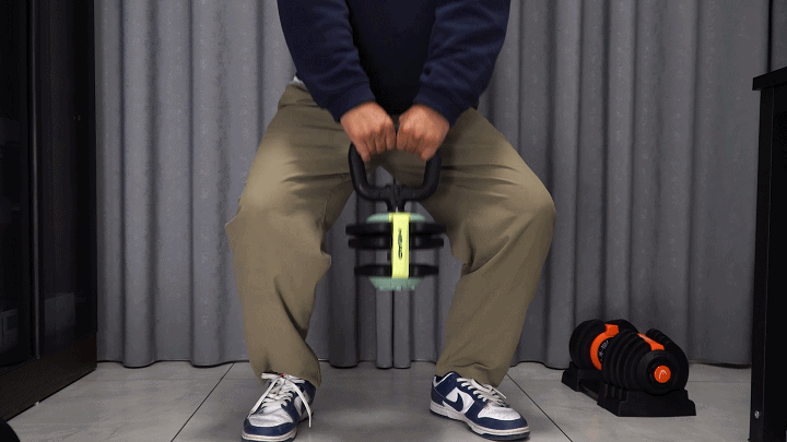 重量的选择上和哑铃完全一样,只需要顺时针或者逆时针的拧动握把,就能增加或者减少铃片,选择合适的重量。