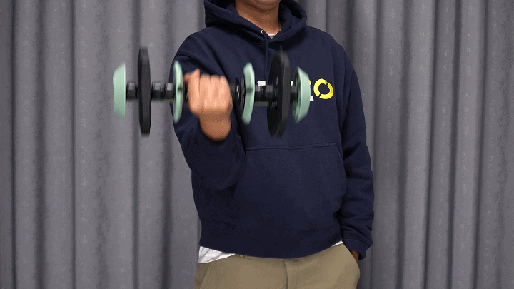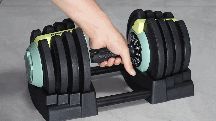 当你觉得哑铃的当前重量有点重时,可以顺时针拧动握把,减少铃片的数量,得到更低的训练重量;而当你想要增加重量,获得更好的锻炼效果时,可以逆时针拧动握把,增加铃片重量,让身体的肌肉得到一次畅快淋漓的发泄。