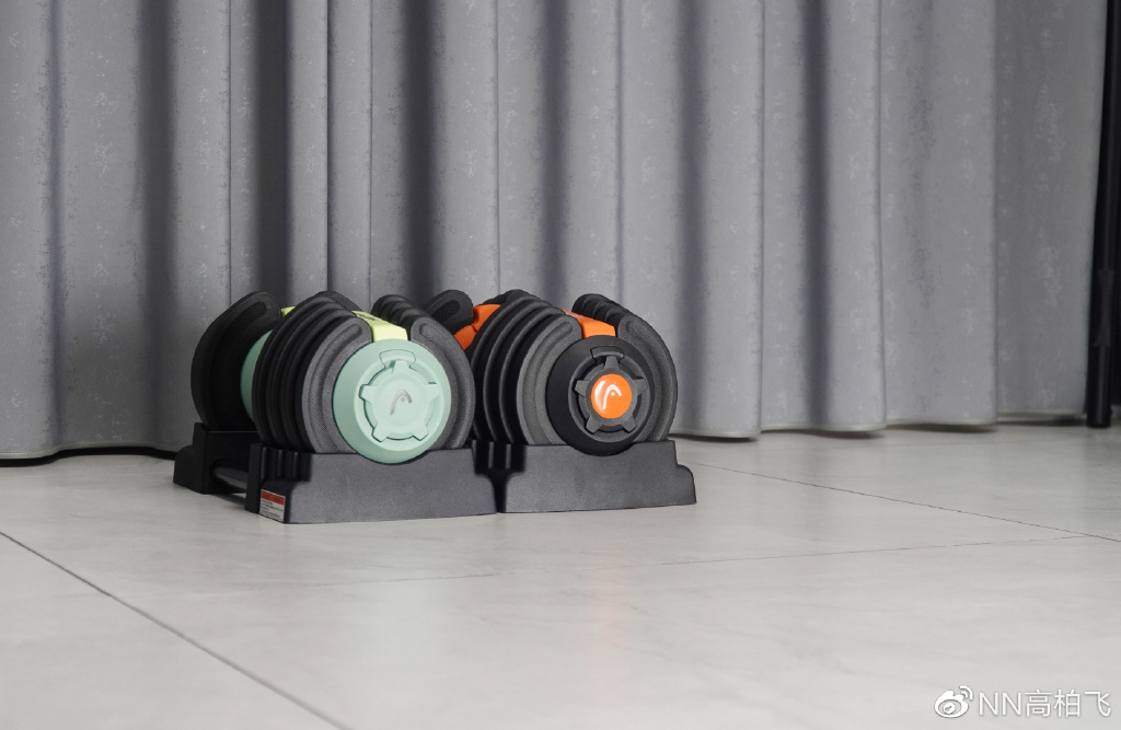 海德三合一可调节哑铃使用了高精矽钢片配重,表面覆盖了一层高强度尼龙作为保护,虽然依然是纯黑的主色调,但也大胆的使用了踪野绿和海德橙两种颜色,给原本充满力量感的哑铃增加了一点俏皮,更加符合当代年轻人的审美。