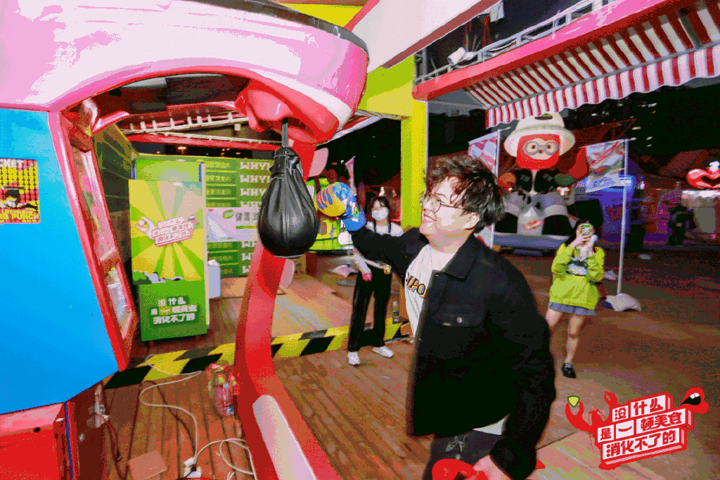 现场还有一系列“情绪消化”的潮玩互动,如情绪消化机、“消了个消”、“大力show”、“幸运抓一把”等,让大家在趣玩中尽情释放。