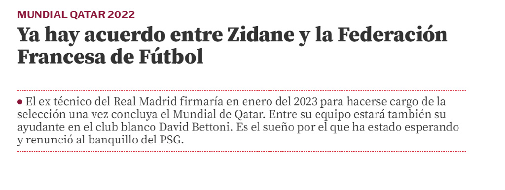 而在今年年底,德尚与法国队的执教合约就将到期,然而双方却迟迟没有展开续约谈判。随后就有媒体爆料称,法国足协已经打算换掉德尚,转而聘请执教履历更好,职业生涯更为传奇的齐达内,来充当法国足球新的引路人。如今《世界体育报》的爆料,正好和这些传闻不谋而合,齐达内入主法国队,应该是板上钉钉的事实了。