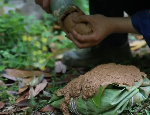 图片来自于网络,如有侵权请告知删除首先小哥所要准备的食材是一只整鸡,这只鸡还是小哥从自家拿的呢。接下来小哥把这只鸡拿去拔毛洗干净,小哥去到外面用竹筒装了一些泥土,这个时候小妖还不知道小哥究竟要干啥呢。弄来这些泥土估计是为了准备制作这道美食而用的吧,小哥还去芭蕉树上割了片芭蕉叶下来。