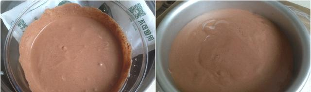 9、用刮刀拌均匀,拌好的慕斯糊状态是比较浓稠的。10、将巧克力慕斯糊,倒入有奥利奥饼干做蛋糕底的模具中,放入冰箱冷藏6小时以上。