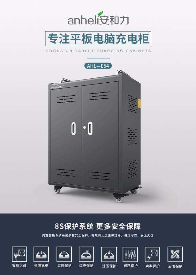 平板电脑充电柜:采用镀锌钢板,柜体结实且绿色节能;8S保护系统,外观设计简洁大气、底部静音万向轮细节人性化!
