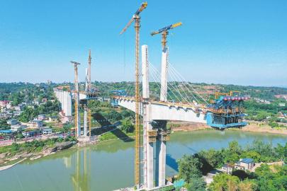 近日,位于泸州市江阳区和龙马潭区交界处的渝昆高铁沱江特大桥正在加紧建设中。牟科 摄(视觉四川)