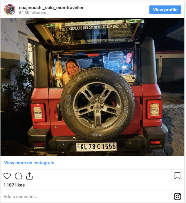 据美国《石英》(Quartz)11月22日报道,今年33岁的纳吉(Naaji Noushi)是阿根廷球神梅西的狂热粉丝。这位有了五个孩子的家庭主妇,在10月15日从印度南部的古努尔村出发,自己一人驾车近3000公里去卡塔尔,她想在现场为梅西呐喊助威。