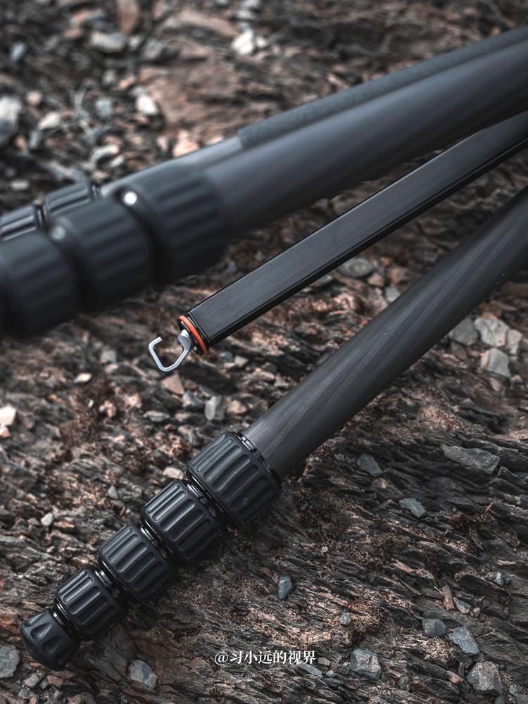 在徒步拍摄过程中,遇到过大风天气,单纯的架设脚架拍摄虽然可以拍摄,但是不放心架子还是做了一点配重。当然中轴底部也有挂钩可以配重。此外,也可以选择把中轴拆掉,或者不升起中轴使用,这会让稳定性效果更好。