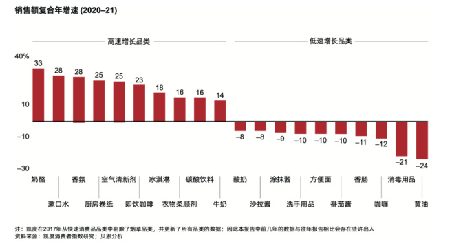 疫情影响了很多行业的发展,牛奶品类却持续增长。贝恩公司发布的《2022年中国购物者报告之中国快速消费品》显示,随着消费者健康意识日益增强,牛奶的需求稳步提升,在2021年取得了14.7%的销售额增长,远远跑赢快消大盘。