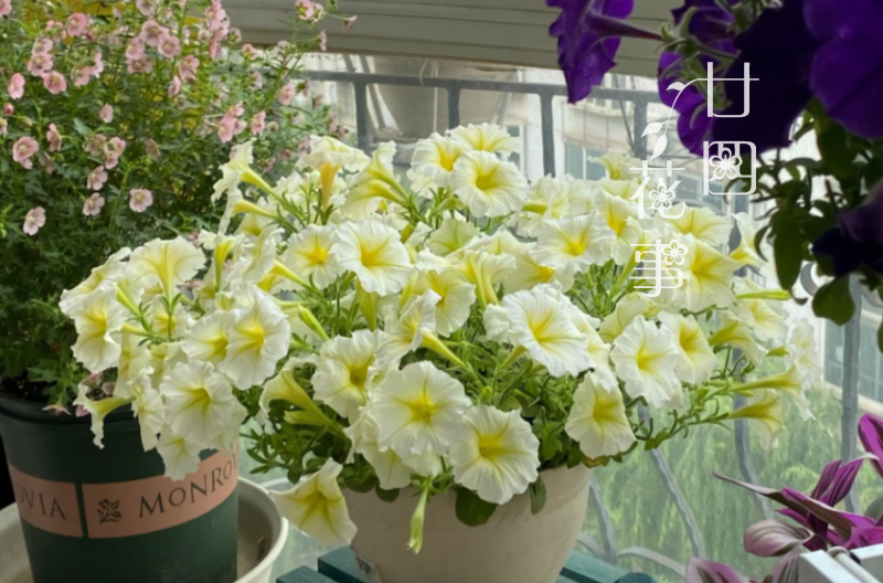 把矮牵牛放到最后,是因为廿六在之前的几年,由于矮牵牛的名字以及其它种种因素一直对它没有太大的感觉,直到去年偶尔一试,结果就欲罢不能了,感觉几年养花都是白养了。矮牵牛的花色品种实在是太丰富了,而且因为是草花好造型,可以应用于各种场景,家庭养的时候把它做成大花球的形状吊起来养,既让景色变得非常立体,又不占空间。