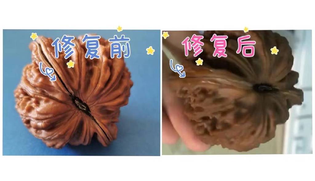 如果裂缝实在太大,或者裂缝在核桃肚上,上边两种方法绝对是解决不了的。我们只能做最后的拯救,首先准备好502万能胶、针和钢丝刷,将胶水涂抹在针尖处,一定要谨慎抹进裂缝。然后用力挤压两侧,最好有能夹住核桃的工具,可以让裂痕往中间收缩,直至胶水干透。最后,再用铁刷轻轻打磨裂纹附近的胶水痕迹,这样一来,我们就手动收缩上了核桃裂痕。但这一步考验玩家的动手能力,如果做不到只好找专人修复,具体还要看这对核桃对您来说有没有专门找人修的必要,再或者直接更换一对新的,重新盘玩。