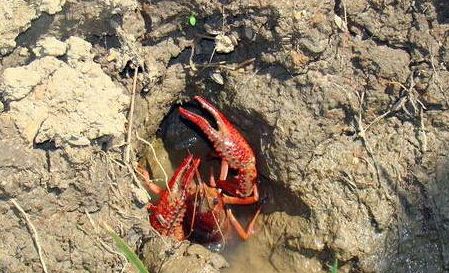 这种方法只能用在小龙虾大量打洞的繁殖及越冬季节。通过观察养殖池塘池埂岸边水线以上10公分左右的区域洞穴分布情况,尤其是养殖池塘的“向阳面”。如果池塘池埂洞穴分布较多,说明养殖池塘存在较多小龙虾。