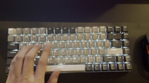 虽然只有白光,但是这键盘的灯光模式还是很丰富的。而且我觉得无人区的配色就适合白色的光源,别的颜色也不好看了。