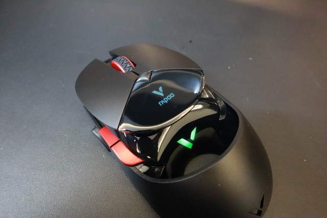 雷柏VT960S鼠标的外观还是很酷炫的,科技感十足,尤其是环绕整个鼠标的金属和侧面按键,夏天摸起来凉丝丝的,手感非常好。中间镂空的处理可让手心的汗随时排出去,夏天用这个鼠标确实比较适合。