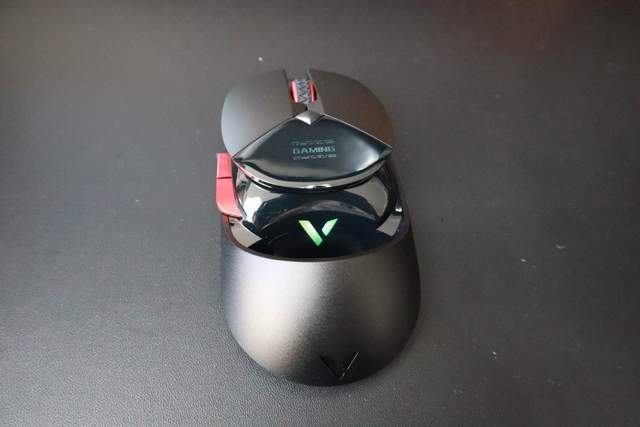 雷柏VT960S鼠标的抓握手感确实不错,即使是握住鼠标也能看到V字的RGB灯效,确实比较不错。四圈金属外壳的手感简直好到爆,而且对于我来说就比较喜欢这个凉丝丝的感觉。