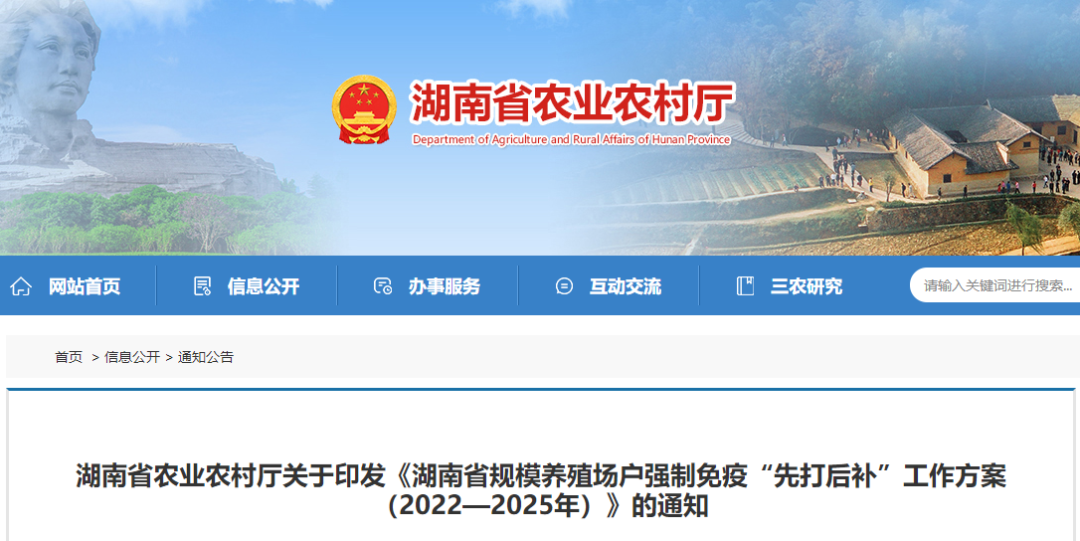 原创(《湖南省规模养殖场户强制免疫“先打后补”工作方案(2022—2025年)》发布)