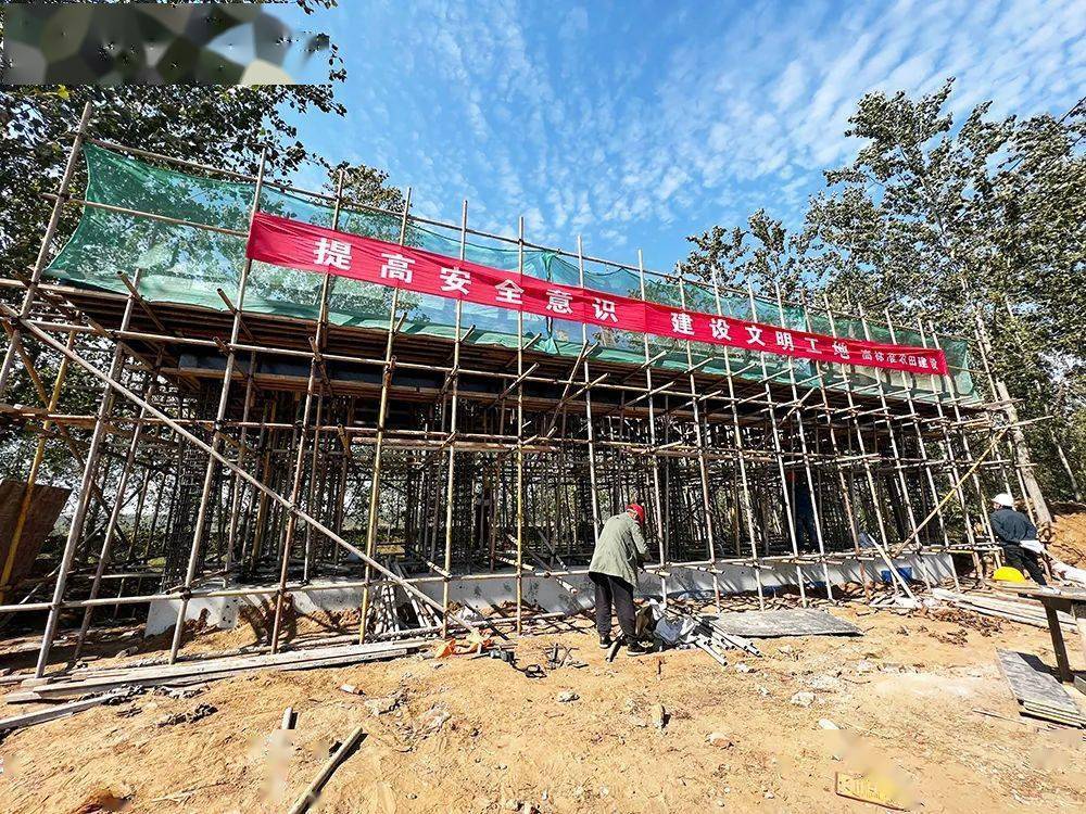 高标准农田建设是稳粮保供之基。10月20日,在戴圩街道片区高标准农田项目杜家村灌溉排水泵站建设现场,工人正在搭设泵房屋顶斜坡面模板。