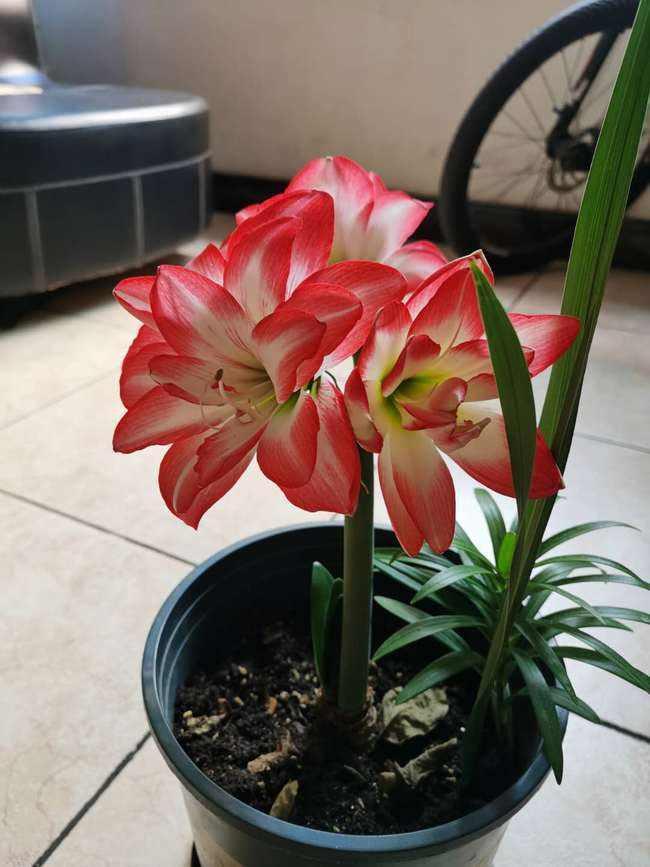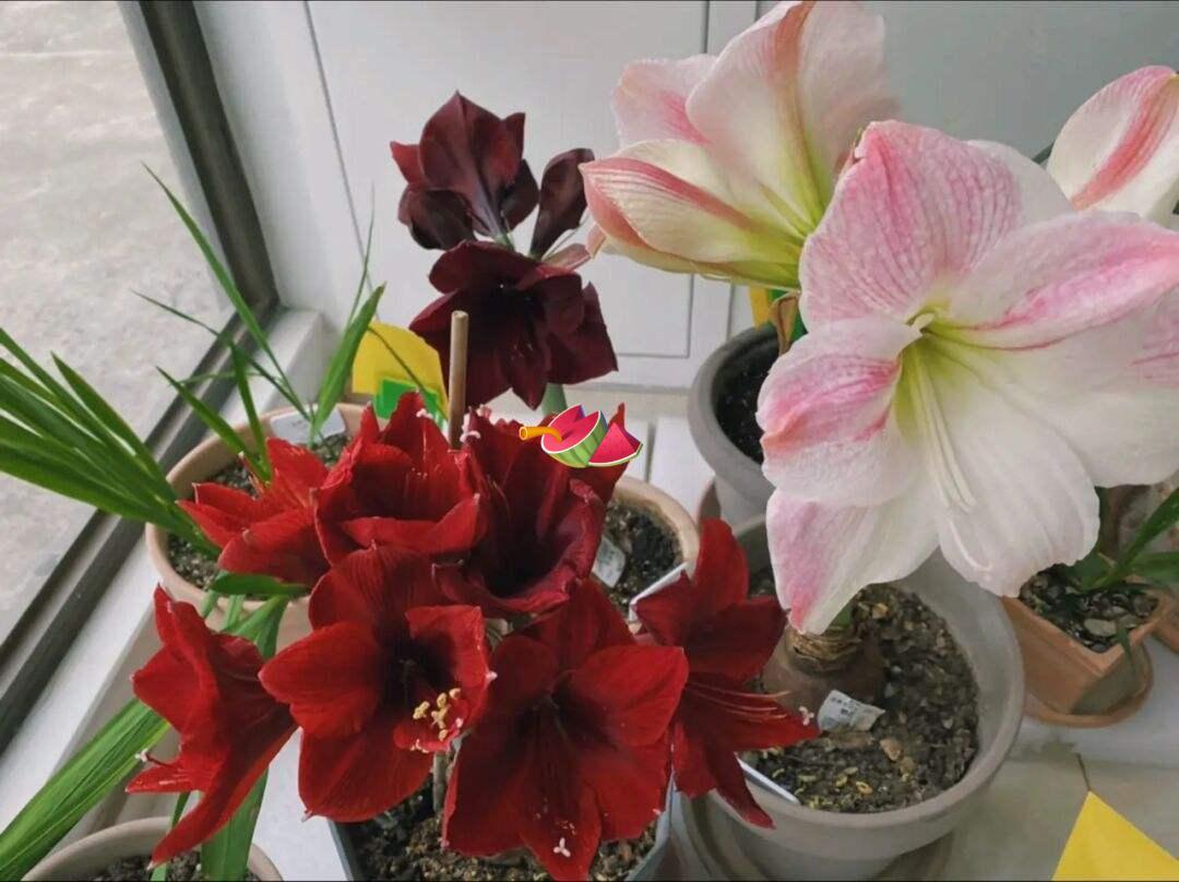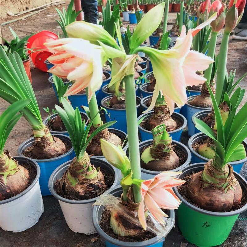 传统的朱顶红,大多是红色的单瓣花,现在还有很多进口品种,大多是重瓣的,花色饱满,花量大,一个花箭,就能开成一个手棒花,不过相对于单瓣的大花品种来说,也会更加的贵。