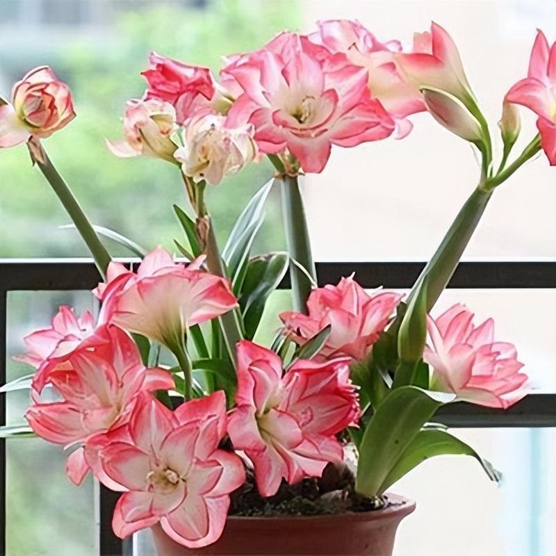 平时养护朱顶红,在秋冬时节要多晒太阳,当有新芽冒出,就可以用球根植物专用肥,10天半月施一次,养球又促花,开花更多更大气。