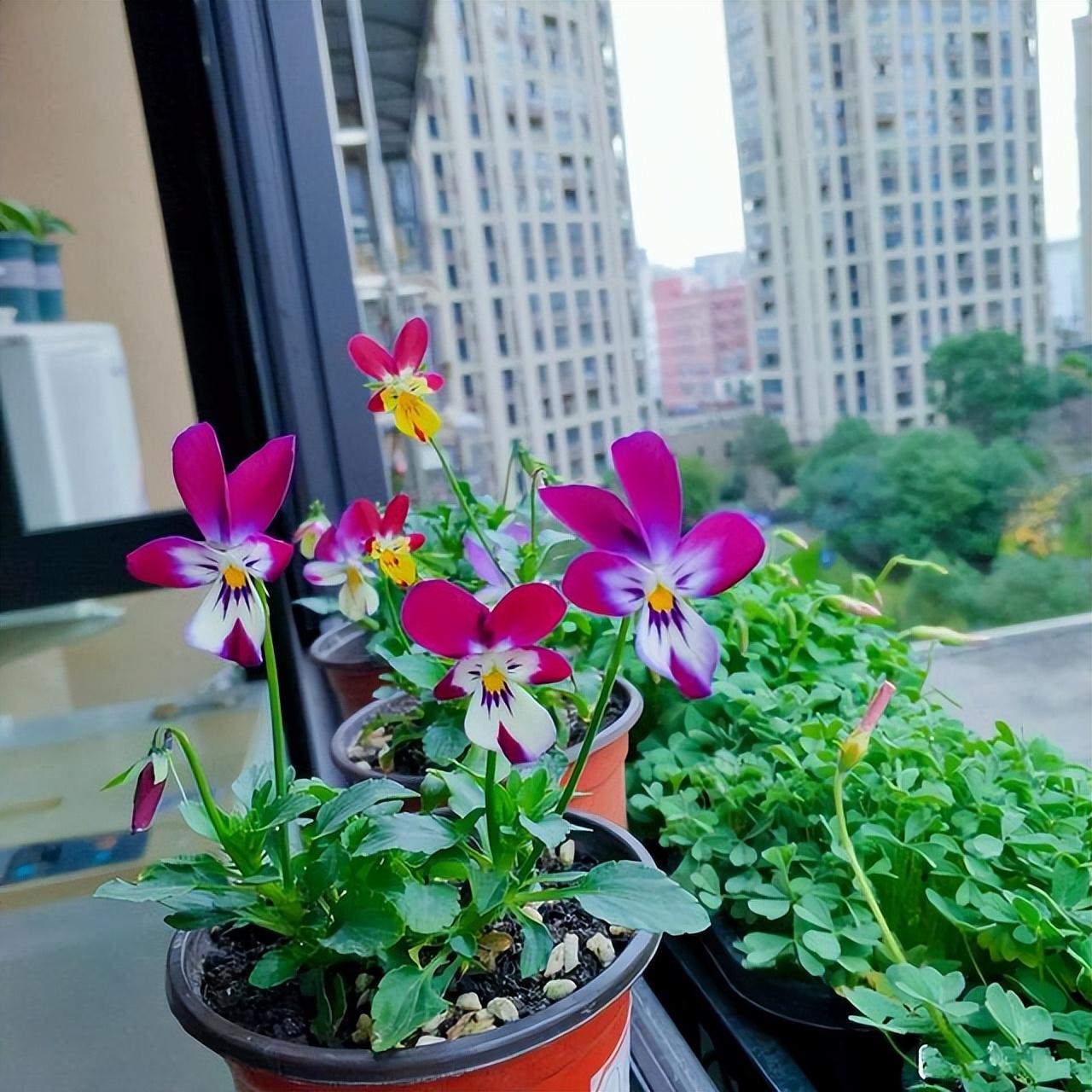 平是养护角堇,要给它充足的光照(其实它对光照的要求并不高,北阳台也能生长开花,但在低温的环境下,光照多一些,能开得更绚烂),施肥建议用复合肥和磷钾肥搭配着使用,栽种的时候,建议加入适量的有机肥,平时养护,半月二十天再增施一次复合肥,10天左右施一次磷钾肥,可以用磷酸二氢钾兑成1:1000的水溶液,直接灌根,能让它持续不断的开花。
