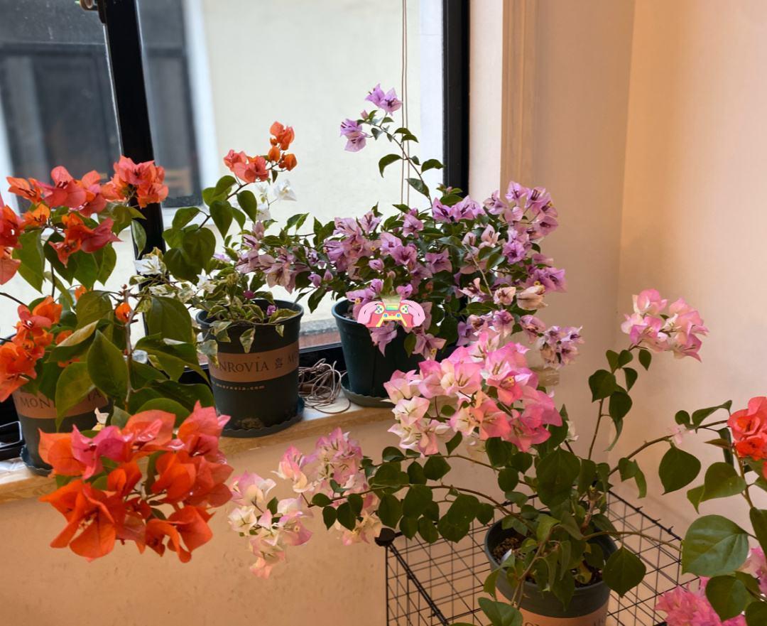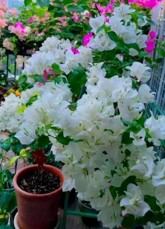 三角梅的枝条柔软,主干粗壮,可以打造成棒棒糖型的花树,也可以打造成花墙、花篱笆,在南方地区适合用三角梅在庭院造花园,北方地区,可以盆栽之后养在室内,大雪纷飞依然能在室内,开得灿烂如春。