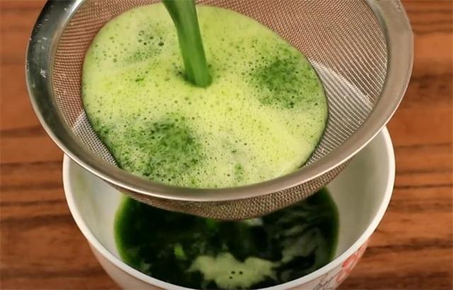 2.把黄瓜皮放入榨汁杯中,加入适量的清水,然后榨成汁,过筛一遍,过滤掉多余的残渣。