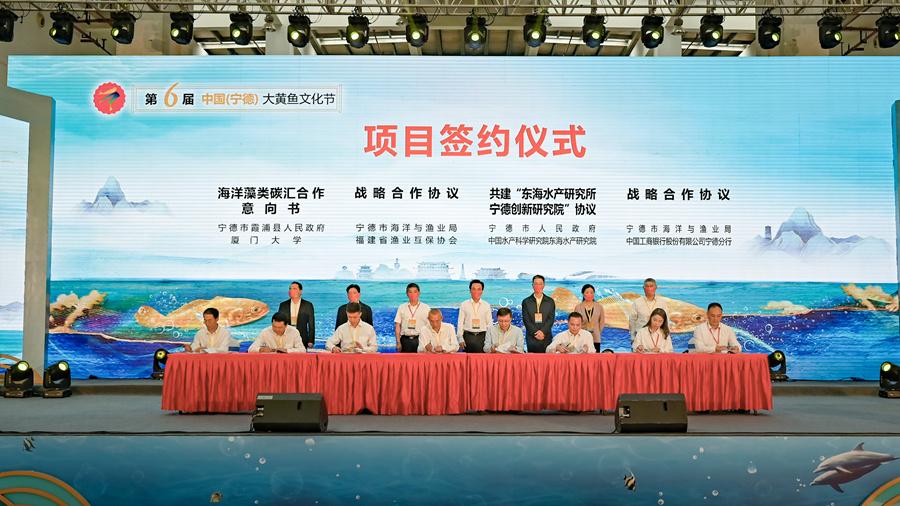 开幕式上,发布了本届大黄鱼文化节会标、中国大黄鱼标识和“宁德大黄鱼”吉祥物、大黄鱼地方标准、烹饪团体标准和大黄鱼产业发展蓝皮书。同时进行了项目签约和大黄鱼特色小镇颁奖,其中三都镇荣获中国大黄鱼养殖特色小镇和中国大黄鱼旅游特色小镇,飞鸾镇荣获中国大黄鱼加工特色小镇。