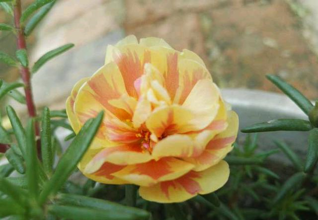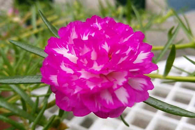 半枝莲的花型看起来像牡丹,但是花朵比牡丹小,而且它的植株和生长习性都跟牡丹完全不同,它的枝条匍匐而生,长度10-30厘米,叶子呈细小的松针形状。