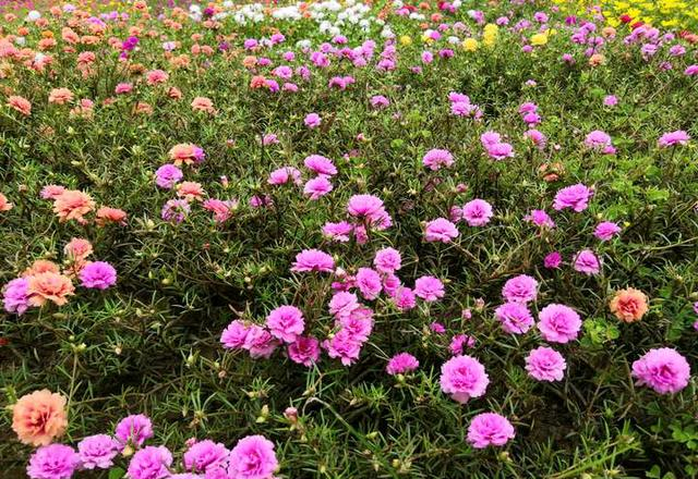 半枝莲属马齿苋科草本花卉,原产于南美洲,花朵颜色非常丰富,很多园林和花坛通常成片栽种,到了盛花期,各种颜色的花朵竞相开放,看上去非常美丽。