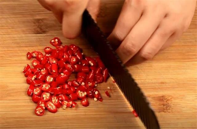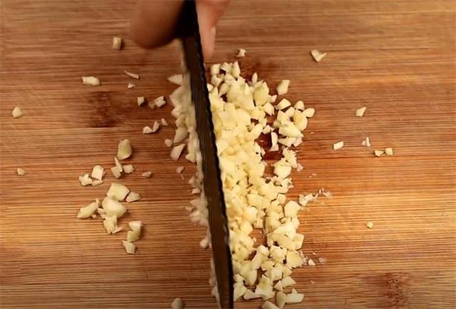 7.起锅烧油,油热放蒜末和小米辣,炒香后加生抽和素蚝油。