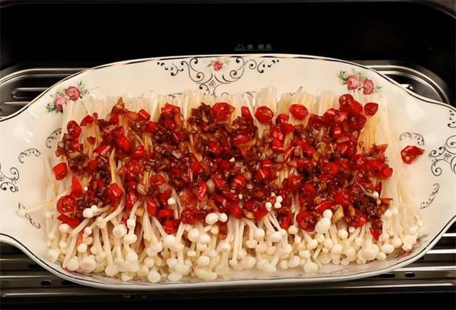 8.浇在金针菇上,上锅蒸10分钟左右。