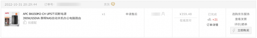 而解决的方法也很简单,只要加少许钱,购置一款UPS不间断电源就行了。这不,这个双十一的第一笔消费,就是心心念念已久的UPS