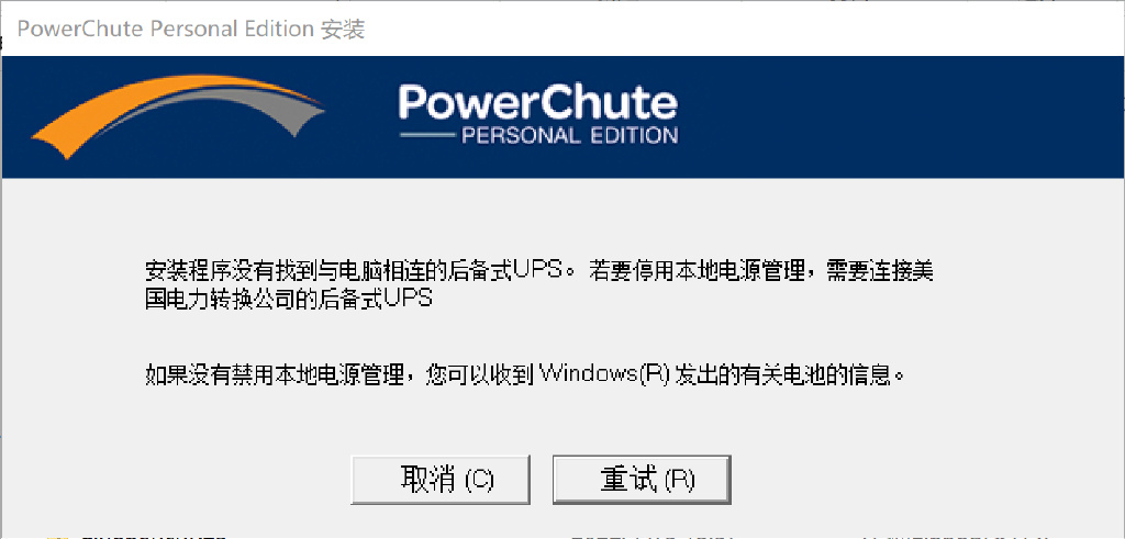 安装PCPE时,需要先将Windows和UPS进行连接,只要使用包装盒内的USB to LAN那根线,一头接入UPS的管理LAN口,一头接入Windows的USB口皆可。否则会收到这样的弹窗提醒▽▼