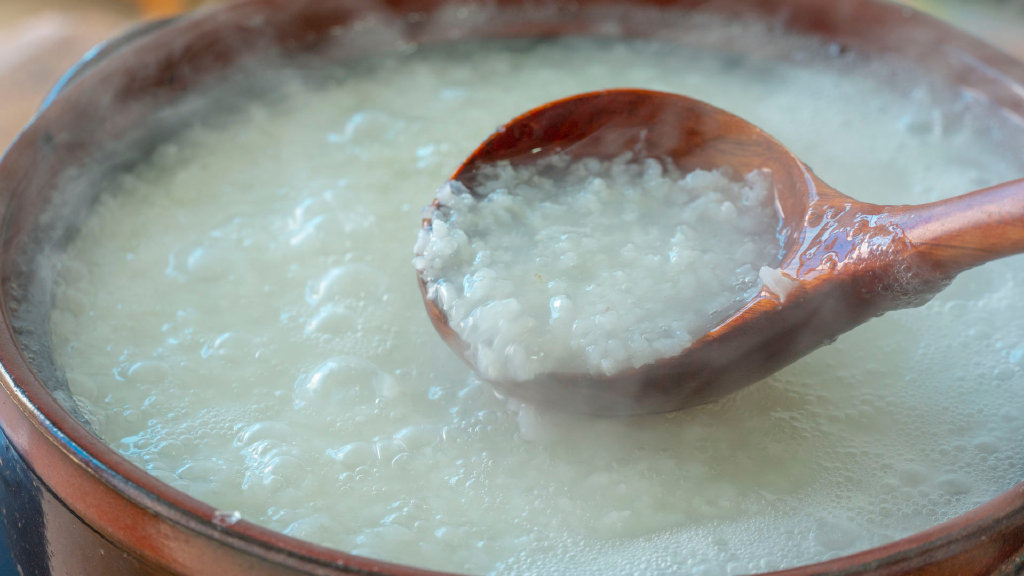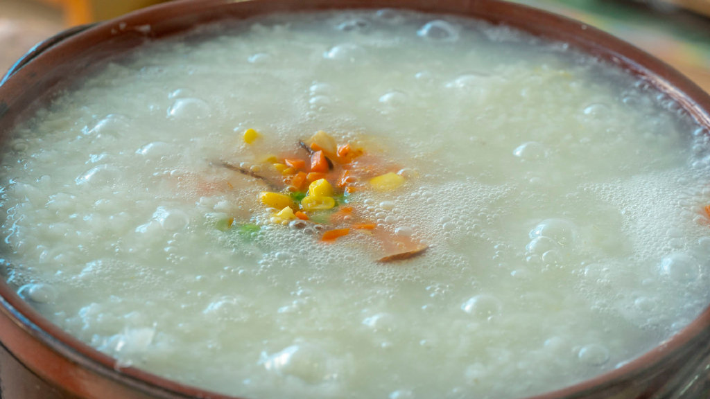 6、大米一小碗,淘洗干净后倒入砂锅,加清水大火煮开,沸腾后转小火慢煮30分钟。