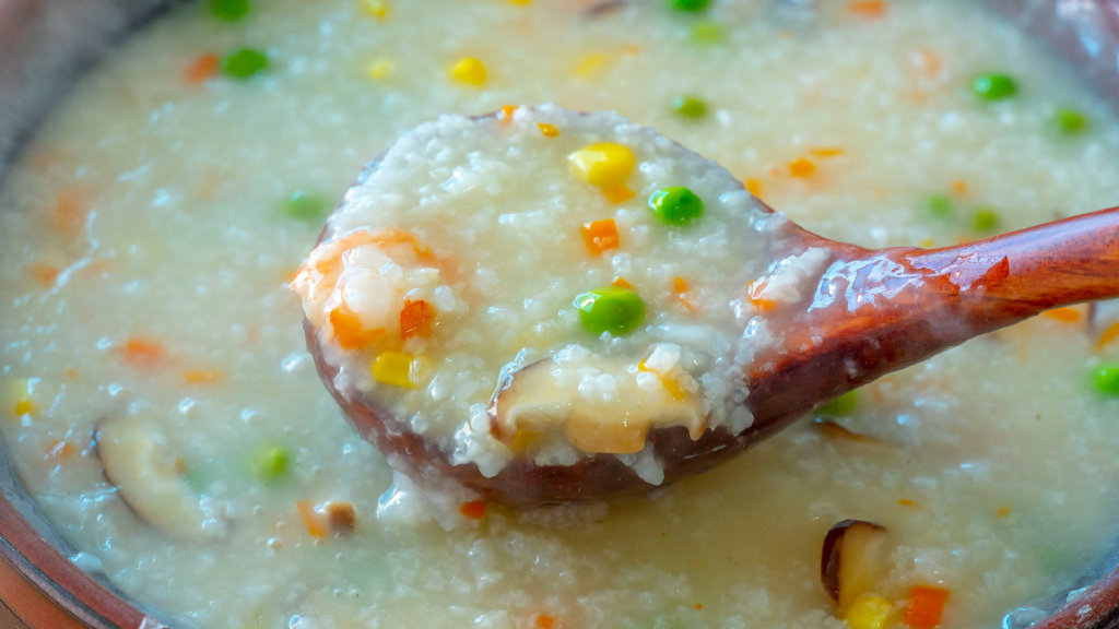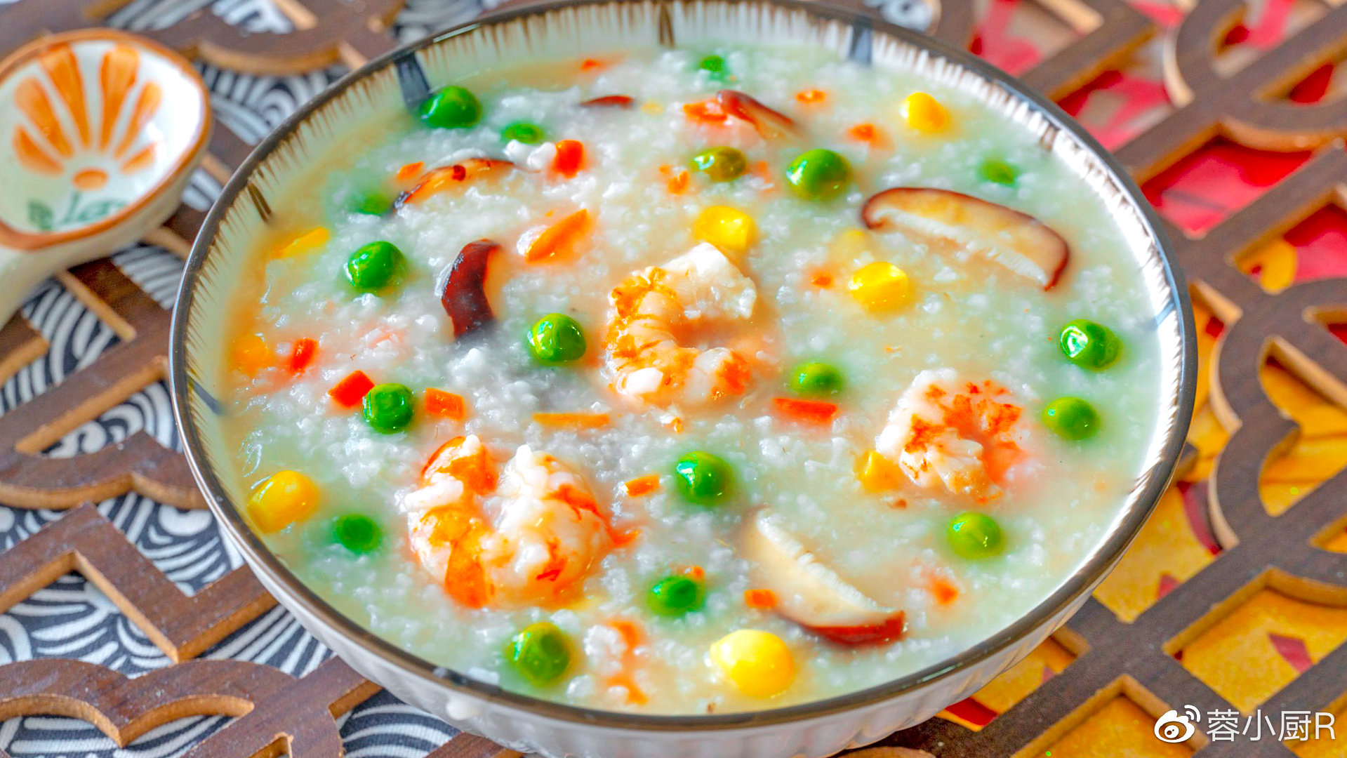 这个虾仁豌豆粥哦!无论是当做早餐还是晚餐,都是好吃又营养的!小火慢慢煮出来米香四溢,超级粘稠,而且加了虾仁和豌豆、玉米、胡萝卜、香菇,营养也是超级的丰富,不光味道鲜美。