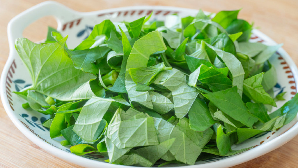 4、再准备一把青菜,我用的红薯叶,切小一点后也装起来。
