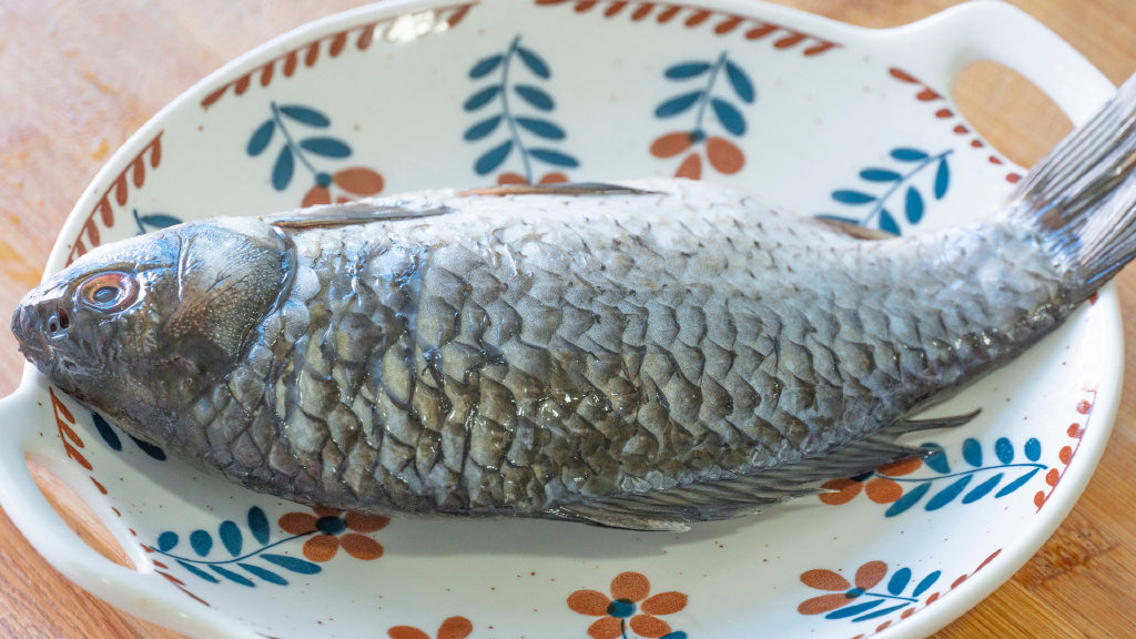 1、鲫鱼一条,清洗干净后沥干水分。鲫鱼处理时候首先要处理干净鱼鳃,不然会很腥。然后就是鱼肚子里的内脏,清洗干净后还有鱼肚子里面那一层黑膜,尽量都刮干净,不然也会很腥的。