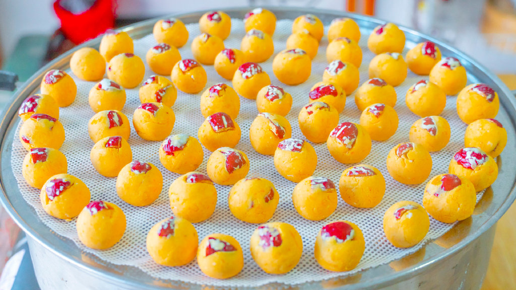 软糯香甜的红薯小丸子就做好了,吃不完的可以等放凉后放冰箱冷冻保存,吃起时候取出来直接上锅蒸5分钟就可以了,简单又省事儿,用来做早餐也超级合适。