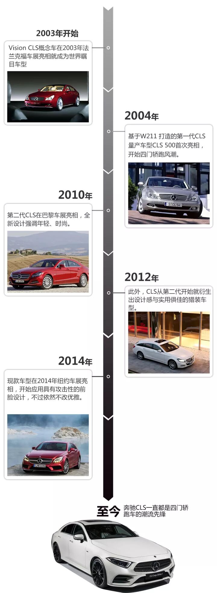 总结:从第一代开始,CLS就是引领时代潮流的一款四门轿跑车,而正是CLS的出现,为奔驰在CL之后开拓了一个全新的细分市场。CLS的热销还衍生出猎装版;而高性能的AMG同样没有缺席。如今全新一代CLS的亮相,意味着这款全新四门轿车离我们不远了。相比前几代,它还能再次掀起轿跑车的潮流么?