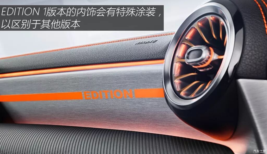 EDITION 1版本车型的内饰有着更为特殊的涂装,更具有活力,方向盘的样式也更加运动,且为平底的设计。