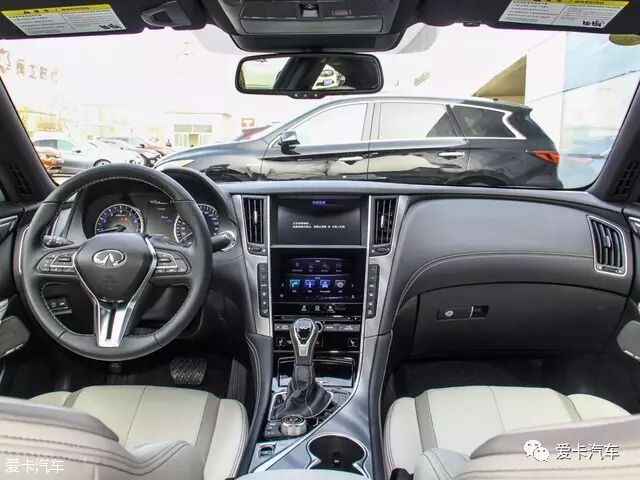 Q60的内饰造型与Q50接近,中央上下排列的两块液晶屏幕非常显眼,上方屏幕显示导航地图信息,下方屏幕内置Infiniti InTouch车载系统,功能丰富。中控T字区域的曲线设计增添了不少运动感。