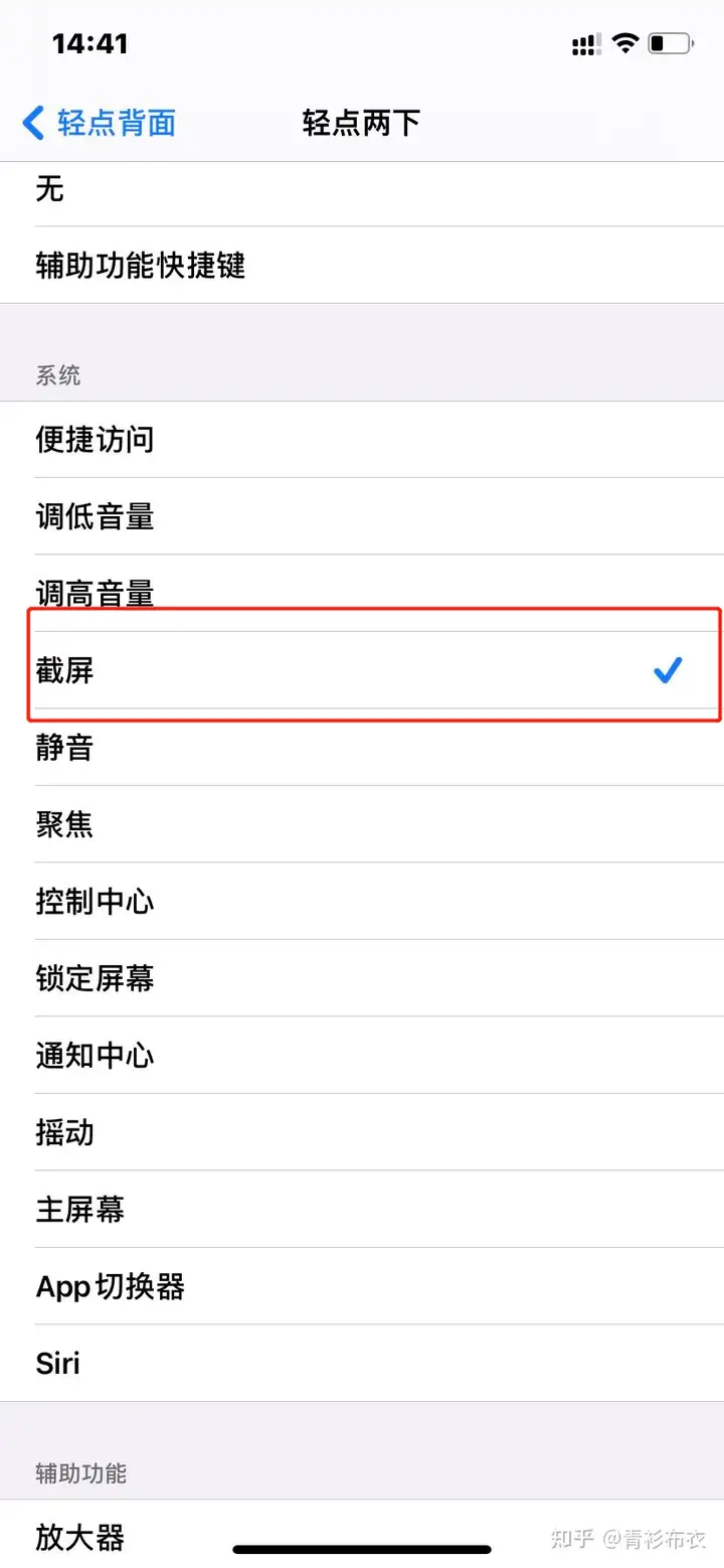 选择其中一种方式进去后可以看到有许多功能,选择“截屏”,即可完成轻点2下手机背部截屏。