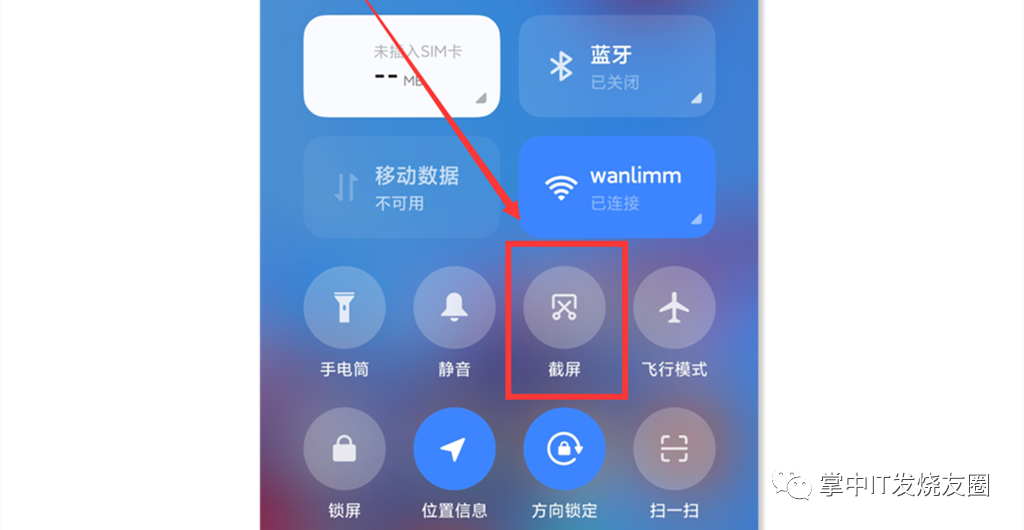 也许你用过这个功能,那就是屏幕下拉进入控制中心,在菜单栏里点击【截屏】图标,就完成了截图的操作。