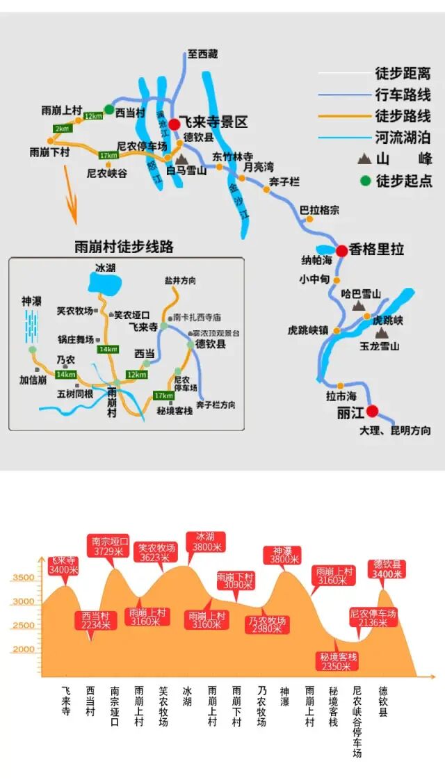 9、客观条件:本线路沿途经济水平较为落后,整体条件较差,例如飞来寺、雨崩村住宿条件较差,且停水、停电时有发生,阴天常无热水无法洗澡,请参与者提前做好心理准备;