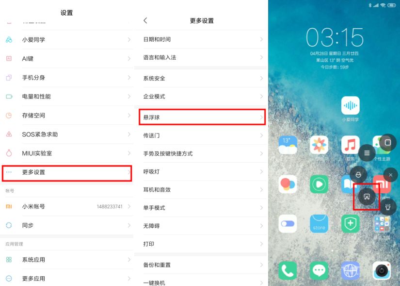 【设置】>【更多设置】>【悬浮球】。然后把悬浮球设置为开启。这样悬浮球会出现在桌面上,需要截图的时候,点击悬浮球,找到截屏按钮就可以截图了。