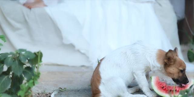 锅盖在吃西瓜。目前都还没碰到它不吃的水果,而且从来不吃自己槽里的饭,总是去偷猫和猪的饭吃。