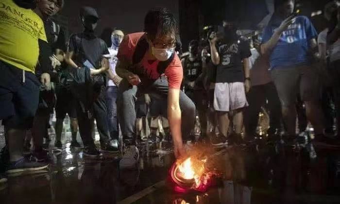 另一边,詹姆斯的言论也打碎了某些香港球迷的玻璃心。据《纽约时报》、CBS等媒体报道,一些香港示威者戴着口罩,举着詹姆斯拥抱人民币的图片;也有人将印有詹姆斯头像的纸片当成面具戴在脸上;甚至还有人焚烧詹姆斯的球衣。有香港示威者在接受美联社采访时说出了一番逻辑奇怪的话,他们称詹姆斯“虚伪”,称他利用自己的名人身份在美国倡导社会正义,但拒绝为他们的“事业”这样做。“我们都在讨论言论自由,没错,我们确实有。但同时,你如果只考虑自己不考虑别人,就会出问题。这次有很多人会受到伤害,不仅仅是经济上,还有身体上、情感上和精神上。所以,我们在发推、说话之前,还是应该谨慎一点,因为它们很可能会带来负面的影响和后果。”