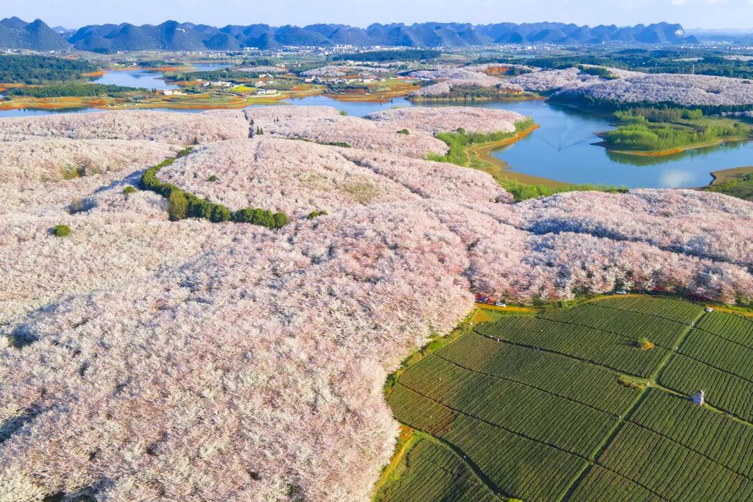 平坝除了樱花,这边还有两千亩茶叶,三千亩桃花,它们与樱花相映成趣。红花配绿地,茶香配樱芳,诗意与浪漫搭配到了极致。 fill=%23FFFFFF%3E%3Crect x=249 y=126 width=1 height=1%3E%3C/rect%3E%3C/g%3E%3C/g%3E%3C/svg%3E)