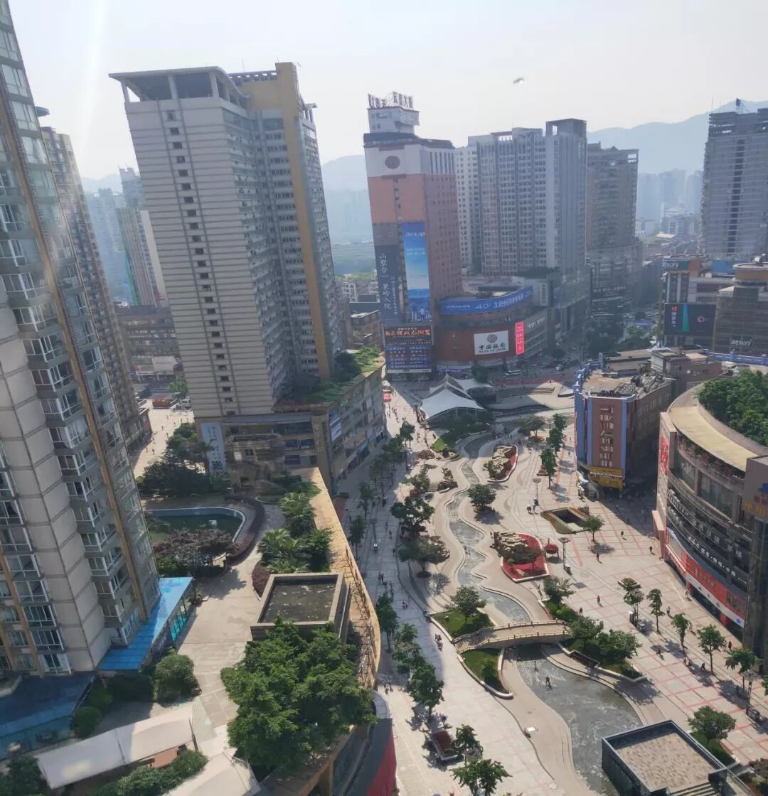 等到晚上休息太阳下山前来到沙坪坝三峡广场,下面有一条街道小溪流,周末大太阳的时候,好多小孩在这玩儿水枪,四月底五月初就比较热了,没事在边上坐着脚泡在水里,和朋友聊聊天爽得很!