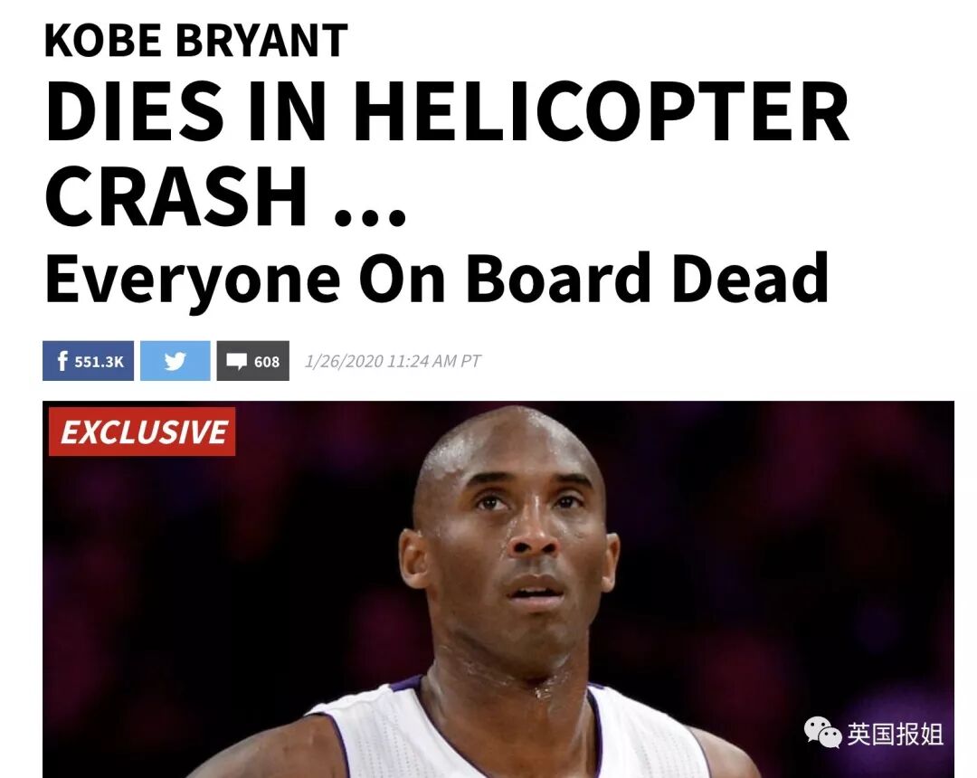 北京时间今天凌晨3:24,美国媒体TMZ突然发布了一条惊人的新闻: 科比布莱恩特死于一场直升机坠毁,飞机上其他乘客也都死亡。 维基百科上面科比的页面,也更新了去世的时间:2020年1月26日,享年41岁。 据TMZ报道,科比是在美国时间周日早晨遭遇意外的。 坠机地点是加州的Calabasas,就位于洛杉矶西部,是加州的富人区。卡戴珊、威尔史密斯等名人都住在这里 失事的直升机是科比的私人飞机。当时飞机上除了科比至少还有7名科比的朋友。飞机起飞后发生了着火事件。美国的应急团队收到呼救以后紧急出动,但没有人生还。 (图源:deadline) 最后9人确定死亡。科比的妻子Vanessa当时并不在飞机上。发稿时最新的消息(TMZ)是,科比的女儿Gianna当时与自己的父亲一同在飞机上 现场目击者称,飞机坠落前他们听到了飞机引擎的轰鸣声。具体的失事原因还在进一步调查之中。 据加州当地报纸Pepperdine Graphic,下图就是那起事故的现场照片。可以看到坠毁爆炸引起的烟雾 洛杉矶警方随后也证实,9名乘客死于Calabasas的一场直升机空难。 翻阅以往的新闻大家就会知道,科比非常喜欢使用直升机通勤。根据Business Insider,科比每次有主场比赛,一般都会坐直升机前往球场。因为洛杉矶的交通状况很不好,坐直升机可以避免自己的身体被堵在车子里产生疲劳。 (图:科比的直升机) 科比也经常带朋友坐自己的直升机。他曾经就用自己的直升机带自己的队友Steve Blake去医院。 科比的私人直升机是一架西科尔斯基S-76 除了外媒报道的和他一起登机的女儿Gianna, 科比去世后留下了他的遗孀Vanessa,还有三个女儿Natalia和Bianca以及刚出生的Capri… (上个月才一起度过圣诞节的科比一家) 在科比闪耀的2000年代,很多球迷说到NBA,往往第一个想到的就是科比,第二个想到的才是湖人。 (图源:YNET) 身高一米九八,生于费城的科比,是布莱恩特家三个孩子里的老幺,唯一的儿子。他和篮球最早的渊源,源于同样是篮球选手的父亲Joe。 3岁学球,高中时成为明星篮球生,科比过人的天资,在退休后开始执教的父亲的引导下,成功吸引了全美国球探的注意。 17岁,他直接进入NBA,成了历史上第六个做出这个决定的年轻球员。势如破竹的冲劲儿,让他在1996年选秀里成了夏洛特黄蜂队的后卫,随后被交易给了湖人队。 Black mamba出洞,开始了可以被称为全盛期的整整20年。 Black mamba黑曼巴是一种眼镜蛇,是科比自己给自己起的绰号,希望球技能拥有黑曼巴一样的能力,以99%的准确度、最大的速度,快速连续地打击,也是对自己球技的一种期许。 第一个赛季,科比成了当时最年轻的首发球员。之后,18岁的他在全明星周末又赢得了扣篮大赛的冠军。还没等大家惊叹完毕,这位天赋异禀的球员又在1998年的全明星赛上出现,成了最年轻的首发队员。 时间来到20世纪末21世纪初,科比开启了自己的三连冠时期。和奥尼尔的相爱相杀,两人无数次的绝妙合作和进攻战术,让湖人队在2000年、2001年、2002年连续三年拿到了NBA总冠军。 争夺MVP、入选最佳阵容,课间悄悄开电视机看比赛、刷网页看贴吧直播,科比和奥尼尔的名字,湖人队的8号、24号球衣,写进了多少80、90后的青春里?连许多对篮球毫无头绪的姑娘们,都能跟着喜欢的男生喊出他的名字。 NBA之于许多人,就是科比。 三连冠的黄金时期过去,两年的职业低潮走过,科比职业生涯的后十年,正面迎上了巅峰。 他在2007/08赛季成了历史上最年轻的一位拿到20000分的球员,当时还不满30岁。同一个赛季,他又拿到了职业生涯里唯一一个NBA最有价值球员的奖项。湖人队在科比的领衔下,接连拿下西区第一、联盟第二的战绩。到了2010年,五个总冠军的戒指傍身,科比已是绝对的王者。 到了2012年,科比成了继张伯伦后,史上最年轻打破30000分记录的球员。但也因为科比的腿部伤病和湖人队的人员变换,他的职业生涯末期,遭遇了接连的波折。被横扫出局的情景,成了久盛不衰的湖人队无法挽回的事实。 2015年底,科比在个人页面上宣布赛季后退役,并于2016年4月14日湖人主场对战爵士队,上演了完美逆转告别之战。 得知消息后,昔日队友大鲨鱼奥尼尔说:“我没有言语去形容失去侄女Gigi和我的朋友、兄弟、一起赢冠军的搭档、哥们儿、家人这样一个悲剧又悲伤的时刻。我爱你,会想念你。向布莱恩特家和其他乘客的家庭表达我的哀悼。我难过得想吐!” 而前一天科比还在自己的社交媒体上,祝贺打破自己得分记录的勒布朗·詹姆斯,得知消息后,在机场上放声大哭。 快船队主教练Doc Rivers在采访里哽咽落泪,说自己不知道该说什么,大家都已经崩溃。 他的儿子,NBA球员Austin Rivers,还有队友Tyson Chandler、PJ Tucker在球场上得知消息后也崩溃落泪。 科比的影响力也绝不仅限于篮球圈,很多人即便不看篮球,科比·布莱恩特几个字也是如雷贯耳。很多明星、歌手都表达了自己对科比的悼念。 英国超模纳奥米·坎贝尔表示:“一起床就听到你和Gianna的新闻对于我们来说是一个无法言说的沉重打击。向布莱恩特家表示哀悼。请安息!” 比伯说:“不可能。你一直鼓励着我曼巴,对我说过许多我现在都会心一笑的话语。爱你!” 泰勒斯威夫特:听到这个难以想象的悲剧我真的心碎了。我无法相信他的家庭正在经历什么。科比对我和我们所有人意义重大。向万妮莎(Vanessa)和科比的家人以及所有在此航班上去世的人们的家人致以我的